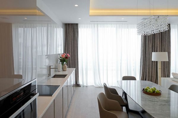 Не хотите загромождать маленькое пространство кухни лишними деталями? Тогда выбирайте кухонные шторы в стиле минимализм. Они имеют массу преимуществ:простота линий штор или ролетов обеспечивает легкость их эксплуатации и не отягощает столь ценное кухонное пространство;