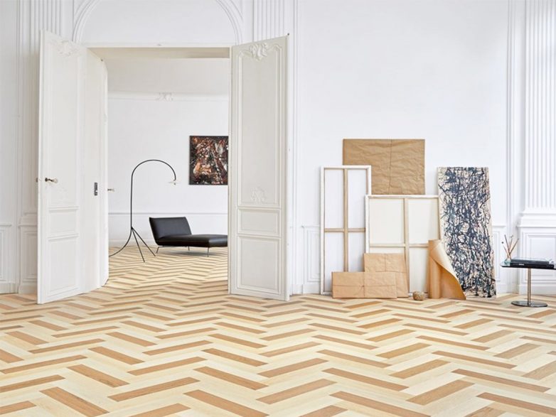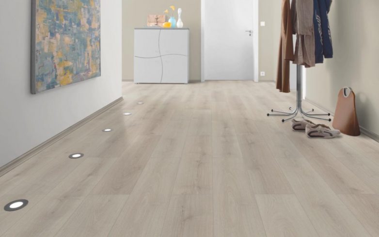 Поверхность напольного покрытия покрыта защитным слоем, который препятствует истиранию и возникновению вмятин.