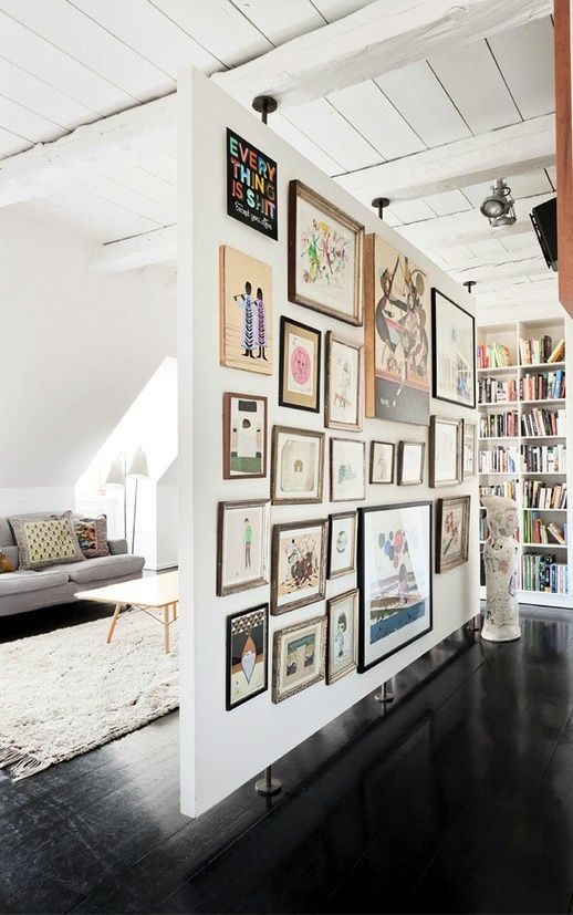 В этом доме перегородкой стал огромный стенд с мини-галереей.