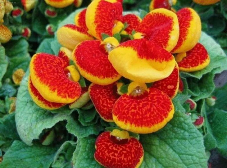 Кальцеолярия – необычное низкорослое растение, которое украсит клумбу в затененном месте. Кальцеолярия не просто теневынослива — прямое солнечное освещение ей вообще противопоказано. Этот экзот любит высокую влажность почвы, но поливать его следует с предосторожностью: при попадании воды на бархатистые листики они существенно теряют декоративность.