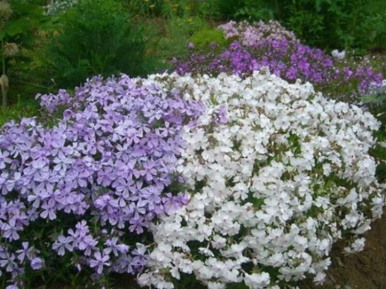 Флокс шиловидный. На редкость неприхотлив, образует куртины высотой до 10 см. Любит солнце и сухую землю, боится застоя воды. Уже с начала мая на два месяца покрывается соцветиями красных, белых, розовых, сиреневатых оттенков. Вторая волна цветения наступает в сентябре.