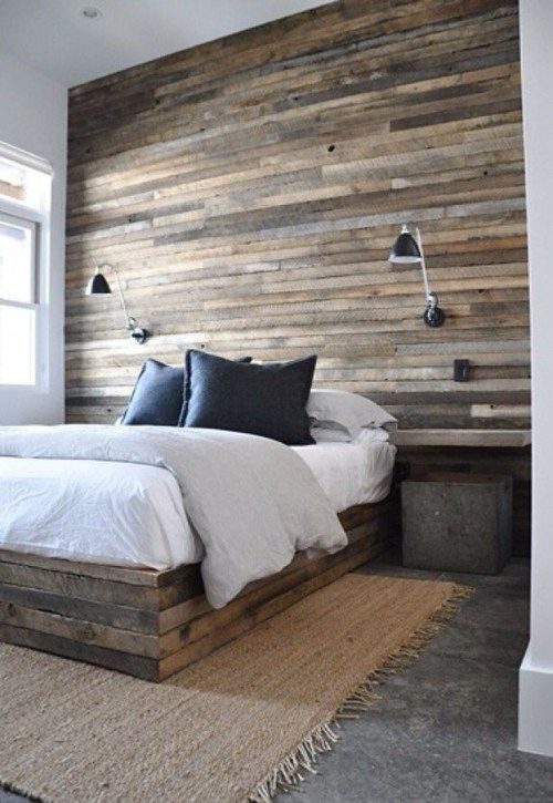Досками можно также выложить стену у изголовья кровати в спальне