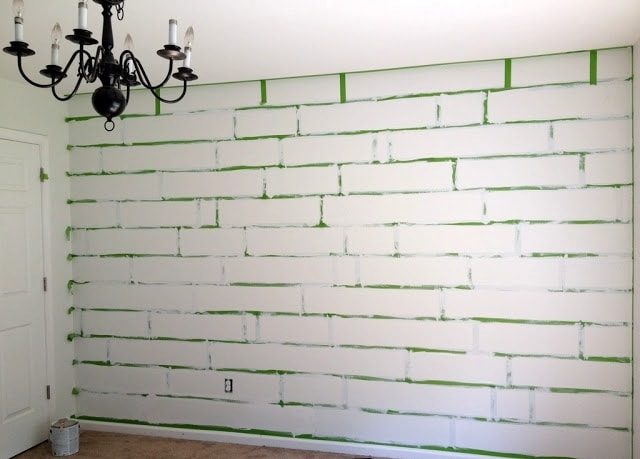После того как все горизонтальные разметки были продублированы малярной лентой, начините разделять их по вертикали. Предварительно разметьте все карандашом, чтобы понять, каков будет примерный итог. «Кирпичики» разного размера будут смотреться привлекательнее одинаковых.