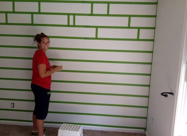 С помощью малярной ленты повторите разметку. Линии должны быть очень четкими и ровными, поскольку акцентная стена привлекает к себе много внимания.