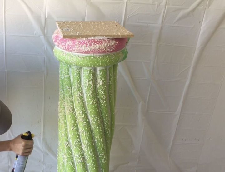 Смажьте каждую деталь из аквапалок клеем, промажьте форму, из которой будет делаться колонна. Дайте высохнуть в течение 4 часов. По прошествии этого времени они не покажутся вам липкими, но аквапалки приклеятся.
