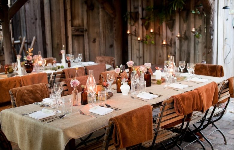 Скатерть из мешковины можно использовать как для повседневных семейных обедов, так и для торжественных ужинов.