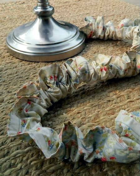 Из небольшого кусочка ткани можно сшить необычный «чехол» для шнура