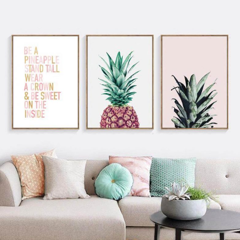 Надпись на первом постере гласит: «Будь ананасом: стой с гордо поднятой головой, носи корону и будь сладким (или сладкой) изнутри». Что, собственно, и иллюстрируют остальные два постера, вот только вкус мякоти не передают.