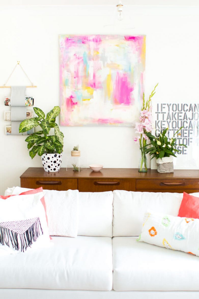 И снова абстрактная живопись, незаменимый элемент современного интерьера. Бодрый и стильный завершающий штрих.