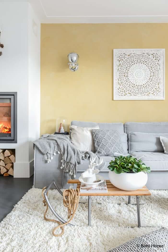 Впечатление обманчиво — это не настоящие мазки кисти, а печать на обоях. Но как удачно акцентная стена играет со всеми основными цветами в комнате!