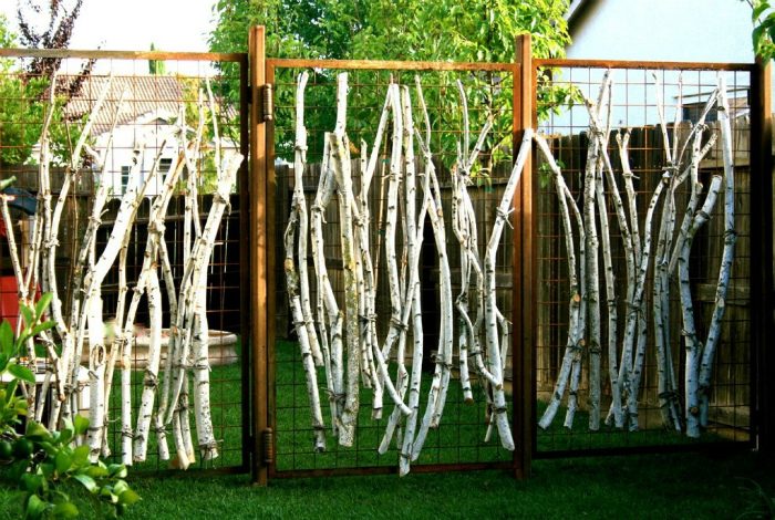 Противникам глухих заборов не стоит отчаиваться и ограничиваться вариантом из рабицы. Просто украсьте некоторые секции рабицы березовыми стволами и ограждение заиграет по-новому.