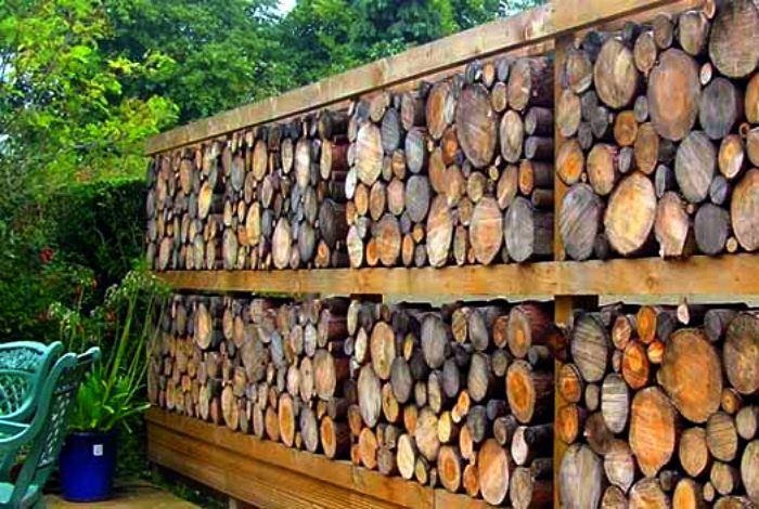 В классическом виде габионные конструкции заполняют камнями, но любители экспериментов выяснили, что для «начинки» сетки сгодятся и другие материалы. Вы можете заполнить габионы шишками, стеклянными бутылками, ветками и любыми другими материалами, которые подойдут по размеру. А можете разделить свой забор на секции, заполнив каждую определенным материалом.