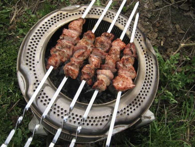 Корпус старого компьютера. Почему нет? Он металлический, лёгкий, компактный, но при этом вполне вмещает пять-шесть шампуров с шашлыком. И естественная вентиляция имеется.