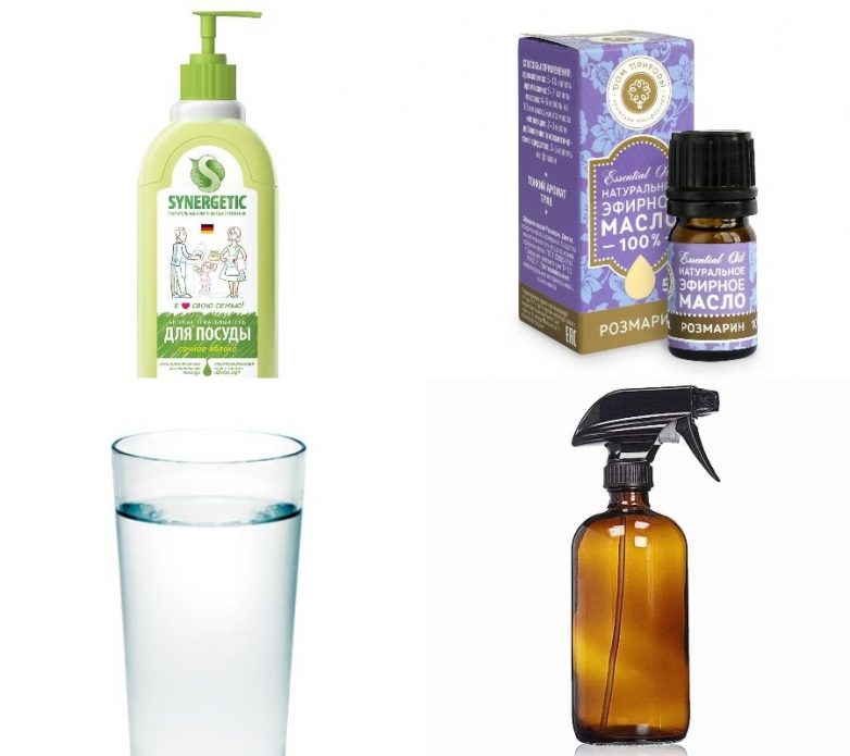 Способ приготовления средства очень прост. Бутылочку заполните водой примерно на ¾. Добавьте несколько капель средства для мытья посуды. Затем добавьте 10 капель эфирного масла розмарина. Закройте бутылку и хорошенько перемешайте. Готово!