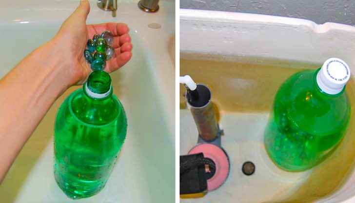 Наполните 1,5-литровую бутылку водой, добавьте камни, чтобы она набрала вес, и поместите ее в сливной бачок унитаза. Таким образом, его объем будет уменьшен, и, таким образом, количество воды, которая попадет в бачок уменьшится. В результате семья из 3 человек может сэкономить около 11 кубометров воды в год.