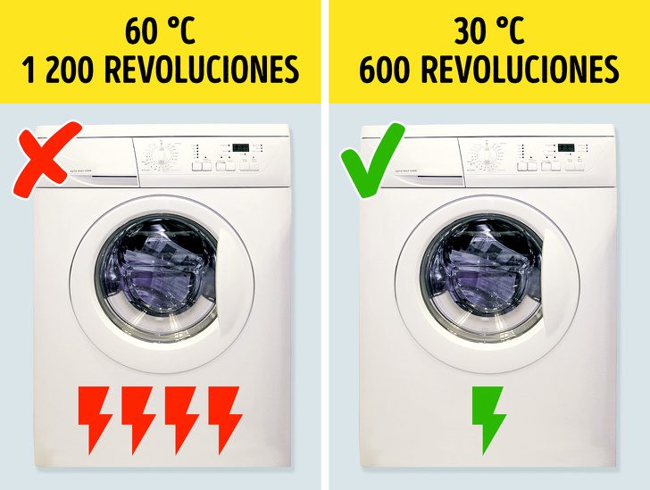 Ежедневная стирка лучше всего проводится при низких температурах: большая часть грязи все равно будет отстирана. Для нагрева воды до 30°С стиральной машиной используется в 4 раза меньше энергии, чем до 60°С. Кроме того, стоит уменьшить количество оборотов центрифуги до 600-800. Таким образом, вы не только сэкономите энергию, но и сохраните внешний вид тканей.