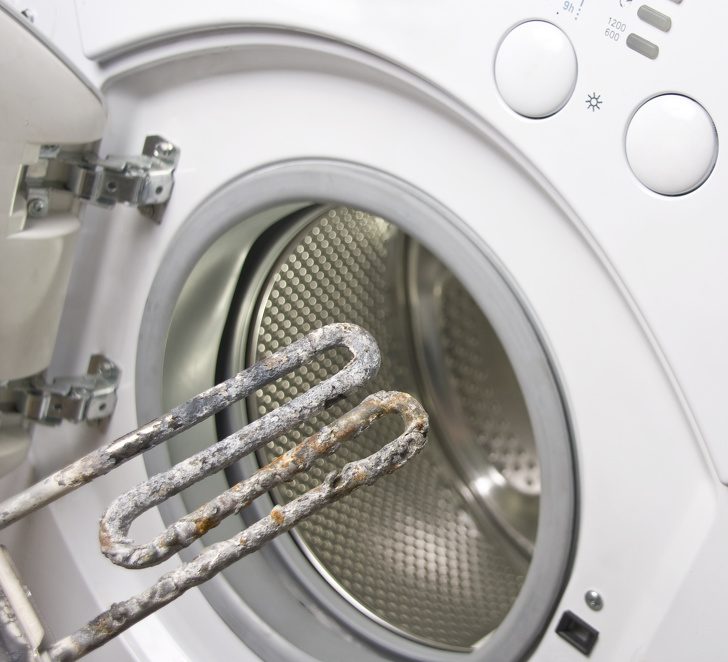 Obsolete electric heater of washing machineИзвесть, встроенная в элементы, которые нагревают чайник, стиральную машину и посудомоечную машину, снижает теплопроводность, а это означает, что устройства начинают использовать больше энергии для нагрева воды до необходимой температуры.