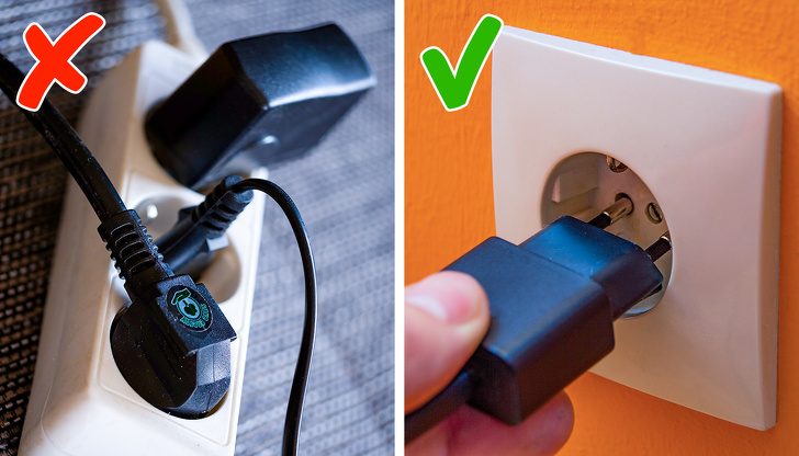 Любое удлинение создает большее сопротивление в сети, что увеличивает потребление электроэнергии. Поэтому старайтесь по возможности подключать электроприборы непосредственно к розетке.