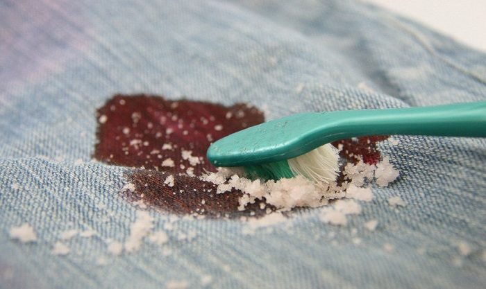 2. Старое пятно от крови удалят соль и лимон