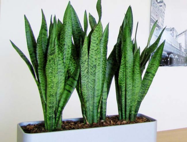 Это растение еще называют «змеиным», оно имеет кожистые мечеобразные листья, которые и стали причиной этого названия. Гладкие вертикальные листья обычно окружены мягкими и густыми побегами. Уровень токсичности для человека довольно низкий, употребление в пищу вызывает лишь кратковременные симптомы, такие как боль во рту, слюнотечение и тошнота. В редких случаях «тещин язык» может стать причиной дерматологических реакций. Животные, проглотившие его кусочки, могут испытывать повышенное слюноотделение, боли, тошноту, рвоту и диарею.