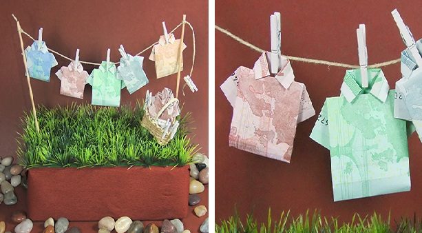 креативность, конечно на лицо, но с денежными купюрами обращаться так нельзя, так как «деньги тоже стоят денег», их печатают на монетном дворе за счет налогоплательщиков. Мятые, искореженные купюры быстро выходят из строя и вообще, выглядят небрежно. Брр…
