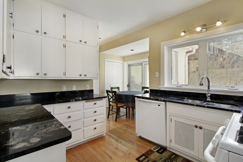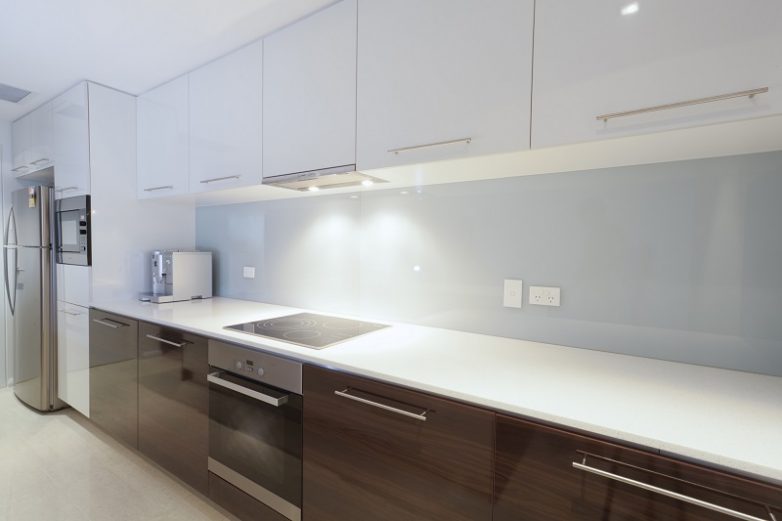 Если в кухне низкий потолок, то высокая мебель с вертикальными дверцами зрительно «поднимет» стены и расширит пространство. При однотонных сплошных шкафах стены кажутся выше. Усилить этот эффект можно с помощью светлого или белого фасада.