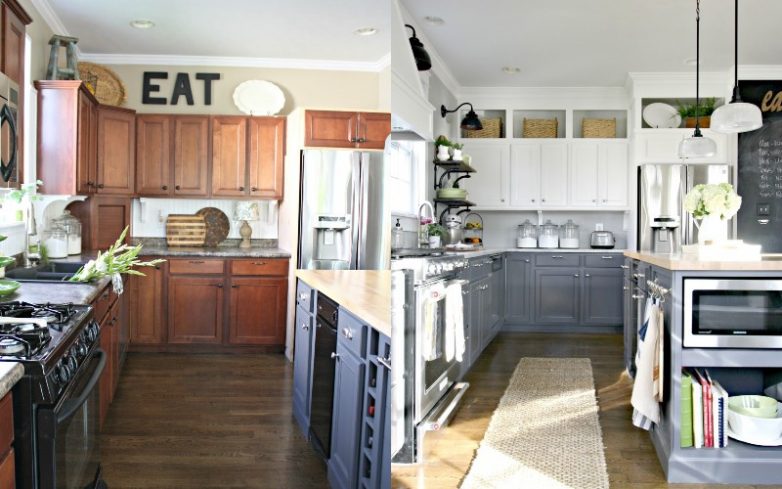 Старые кухонные шкафчики можно преобразить, надстроив с помощью молдингов и листов МДФ.