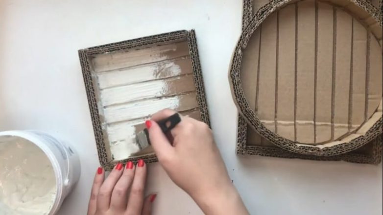Покрываем заготовки из картона шпатлевкой и оставляем на 12 часов, чтобы она высохла.