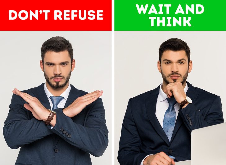 Попробуйте посчитать, сколько раз в день вы говорите «нет» или отказываетесь от чьей-либо идеи. Даже если вы на 100% уверены, что что-то не сработает, просто подождите. Дайте этому немного времени.