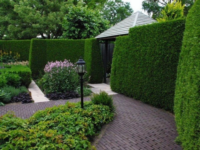 На небольшом и затенённом участке живая изгородь может выглядеть слишком громоздко;