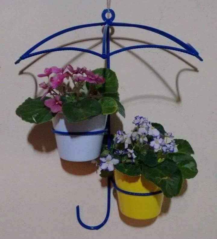 У этого кованого зонтика задействовать можно даже ручку: при желании ее легко дополнить подвесным кашпо.