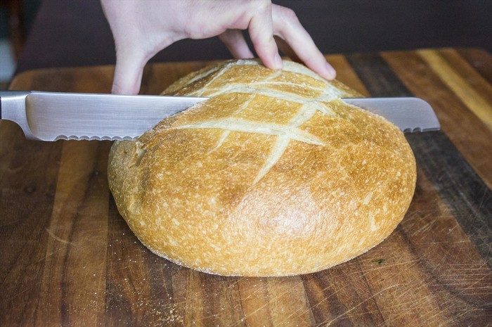 Для того, чтобы хлеб дольше не черствел, буханку нужно резать не с конца, а с середины. Иными словами, хлеб делится на две части. Как это не странно, но в таком состоянии булка медленнее сохнет и дольше хранится.