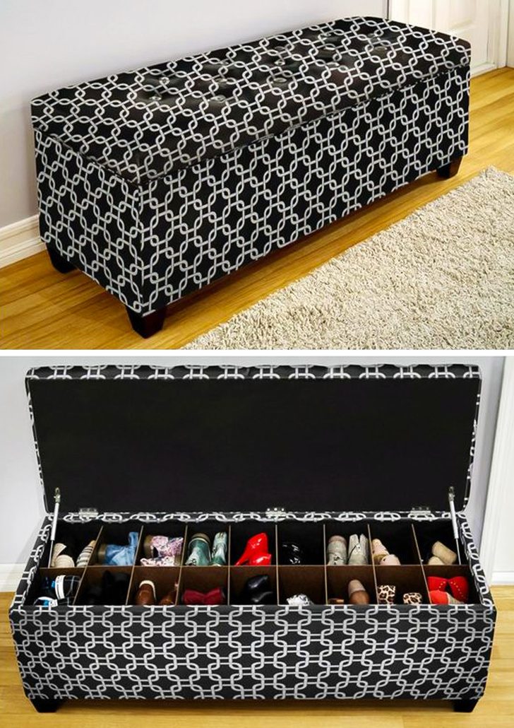 12. Пуф-обувница — еще одно место для хранения обуви