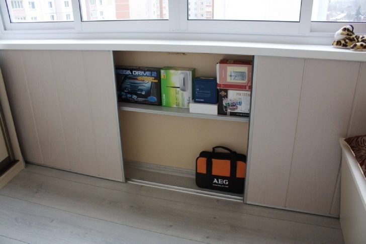 Несложная модификация из полок и раздвижных дверок превратит место под подоконниками, которое в большинстве случаев просто пустует, в подобие неглубокого, но широкого шкафчика, где могут поместиться небольшие коробки от техники, принадлежности для уборки или даже книги.