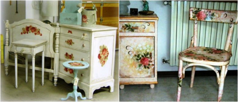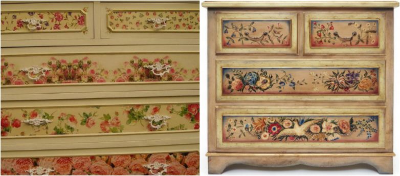 Чтобы создать живописные полотна на мебельных фасадах, еще средневековые мастера использовали аппликации из бмумаги. В наши дни интерес к этому необычному приему нисколько не угас: увлеченные рукоделием люди выполняют необыкновенно красивый декупаж мебели!
