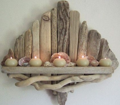 Совместив между собой различные по цвету и форме отшлифованные морем кусочки дерева, можно создать разноплановые элементы декора.