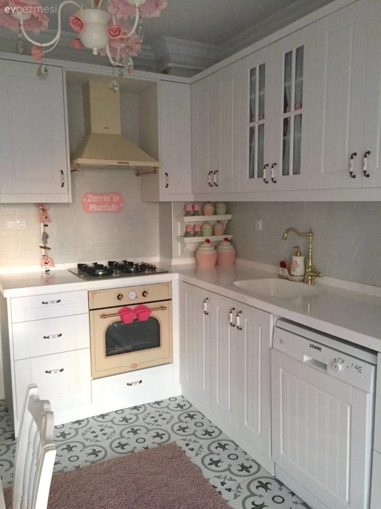 Очень уютной будет белая кухня с розовыми элементами. Каждой хозяйке будет приятно готовить здесь вкусные блюда для своих родных.