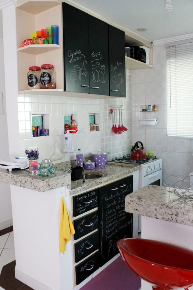 Сделать дизайн интерьера более индивидуальным можно с помощью доски или шкафчиков, на которых можно рисовать мелом, и оставлять записки членам своей семьи.