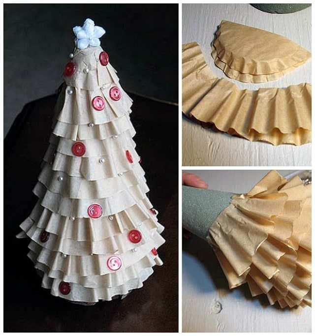 Сделать крошечную елочку можно из любого подручного материала. Подойдут даже фильтры для кофе.