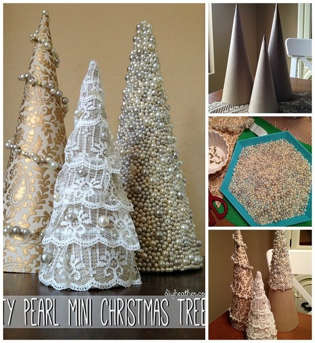 Покрыв конус краской с эффектом металлика и дополнив его отверстиями, легко создать потрясающую светящуюся елочку. Достаточно вставить в отверстия прозрачные шарики, а внутри конуса разместить источник света на батарейках.