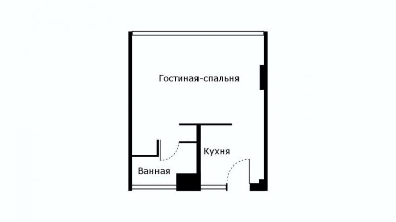 Изначально план микро-квартиры 24 кв. м. выглядел так и был не совсем удобен: