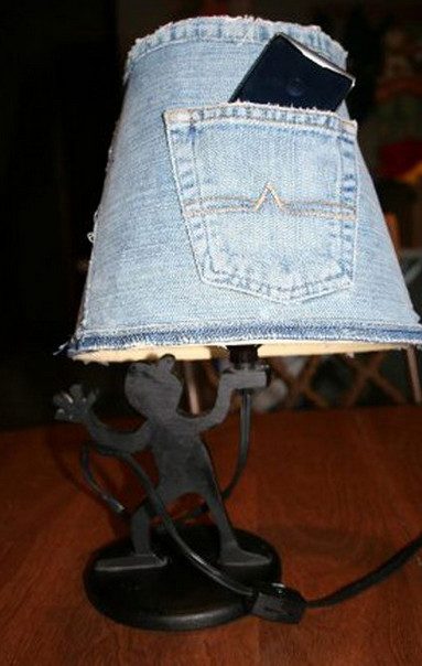 Если нужно обновить интерьер, то из джинсов получится замечательная лампа с оригинальным абажуром.