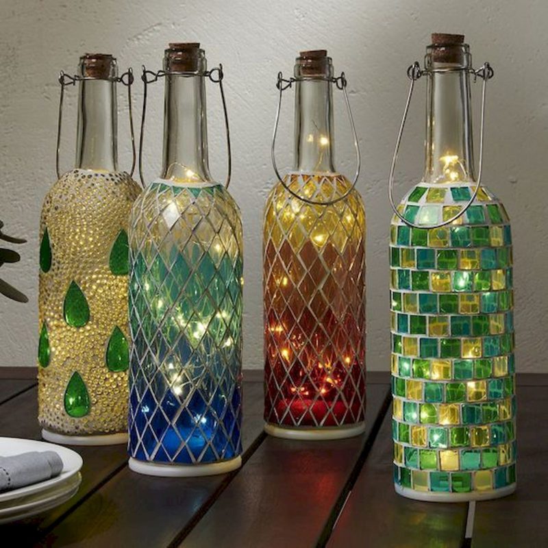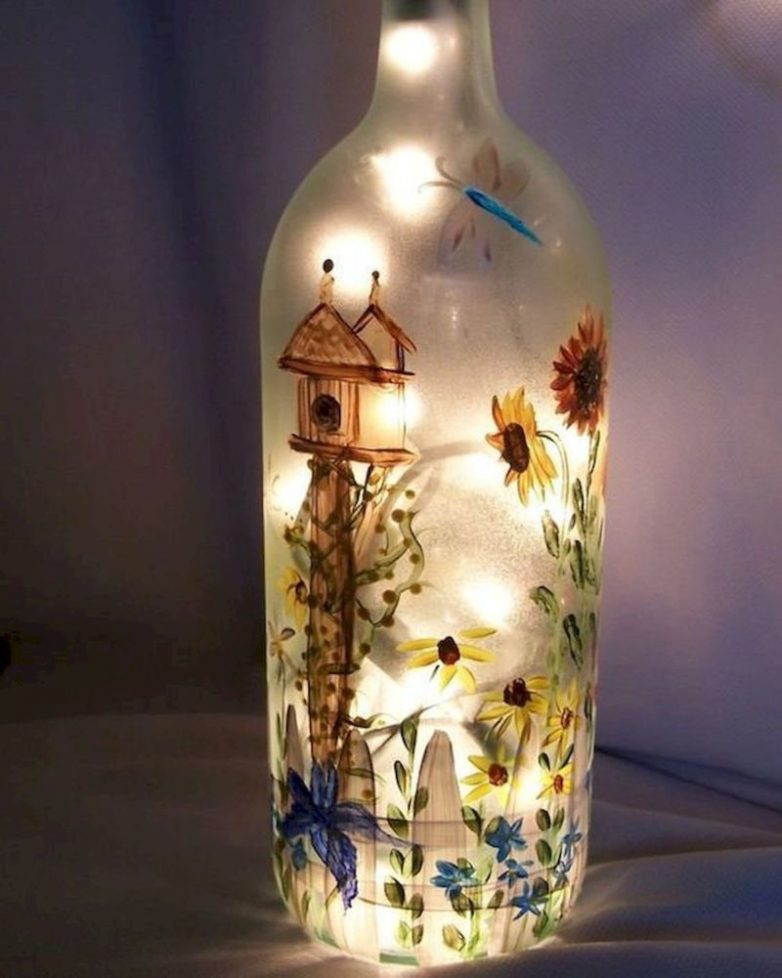 Добавьте немного красок, витражей, наконец, света в виде гирлянд, и сказочное украшение готово! Вот лишь 21 идея с винной бутылкой: