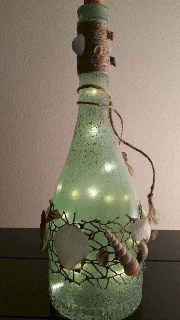 Замечательный декор бутылки дарами моря, привезенными с отпуска