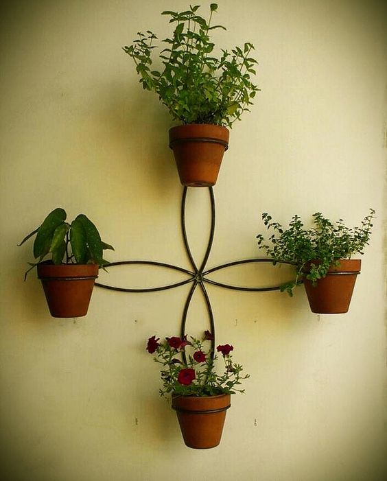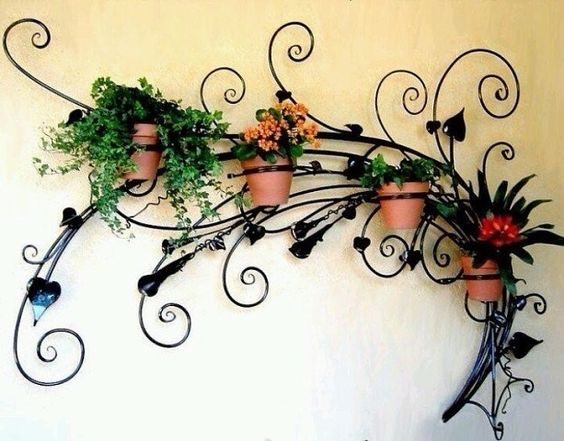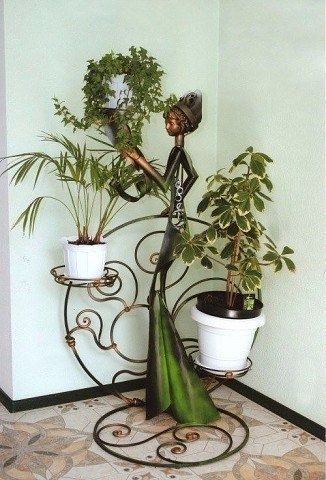 Фантазийный декор с помощью кованой подставки и комнатных цветов