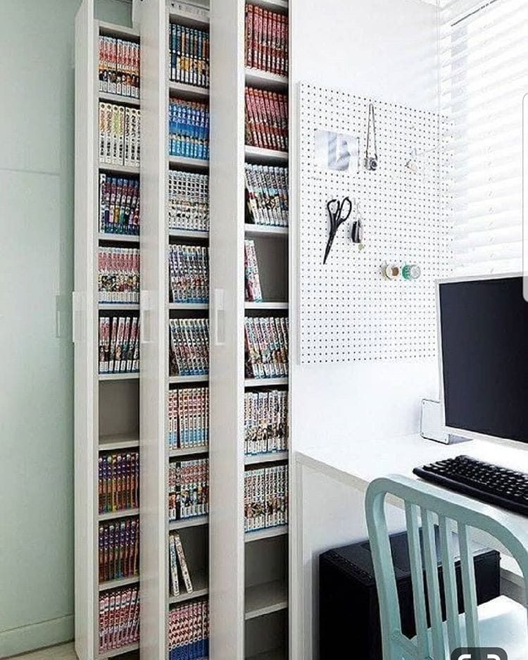 Небольшого клочка пространства хватило для размещения целой библиотеки. И все это благодаря хорошо продуманной выдвижной системе.