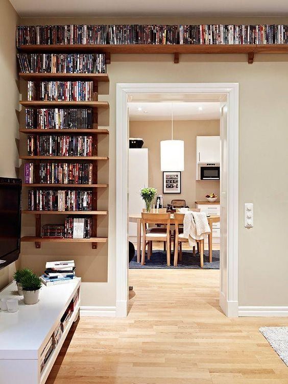 Такие книжные полки не занимают много места, зато способны вместить полноценную библиотеку.