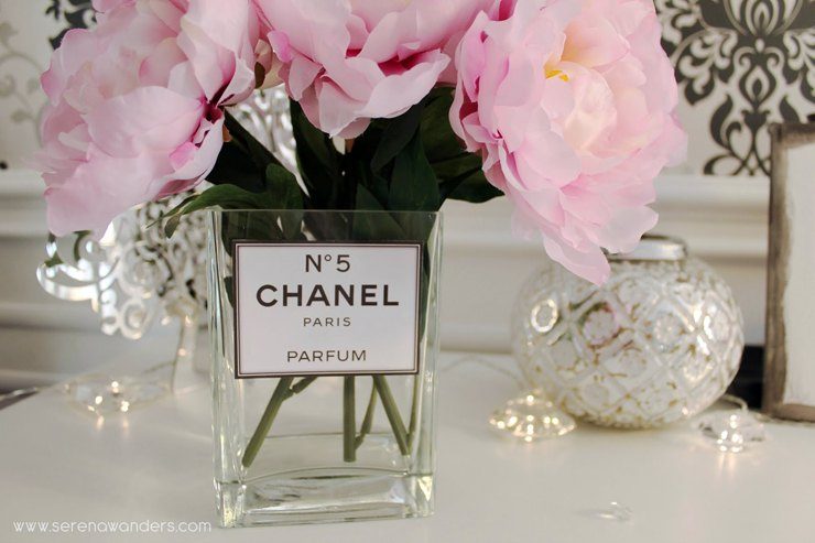 Бутылочку из-под духов можно превратить в очаровательную вазочку для цветка.