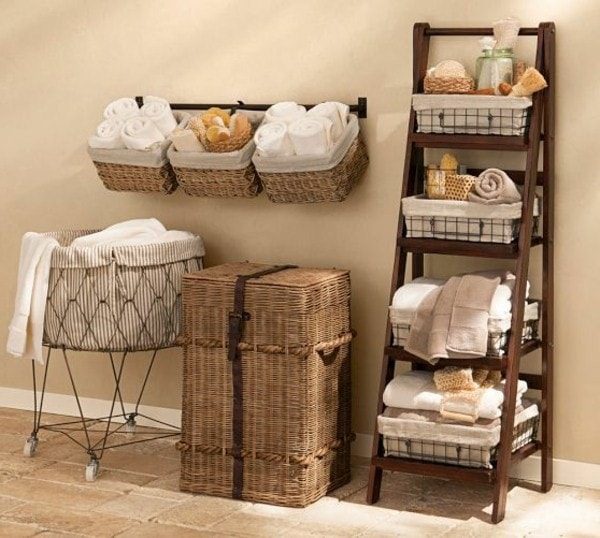 Даже маленькая узкая корзинка способна навести порядок в ванной
