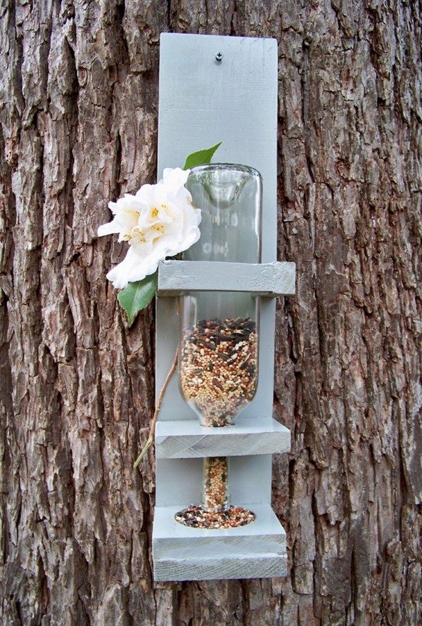 Можно приклеить к блюдцу колышек и воткнуть в землю в любом месте сада. Кормушки можно делать из соусниц, заварных чайников, стаканов. Фантазируйте!